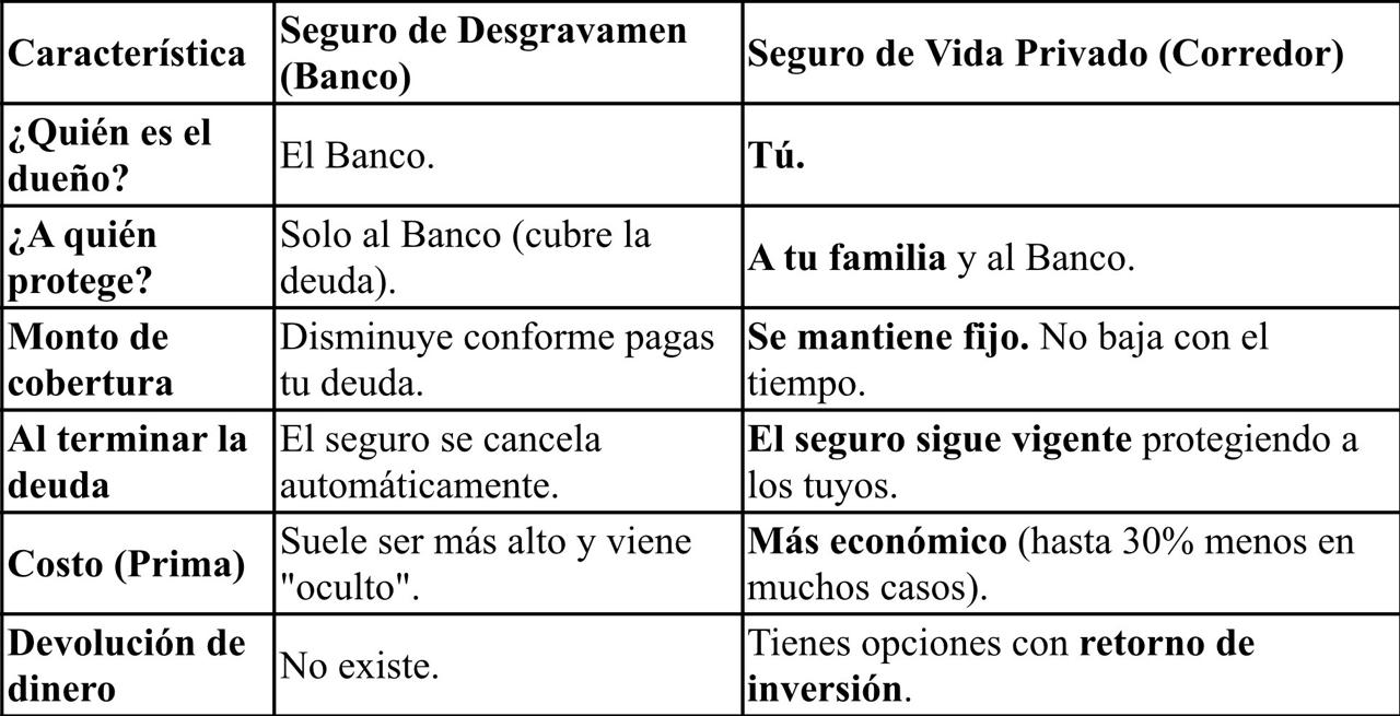 Cuando sacas un crédito hipotecario, el banco te obliga a tener un seguro de vida (Desgravamen). Sin embargo, tienes derecho a presentar tu propia póliza privada.